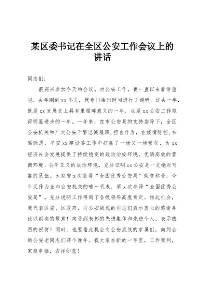 / 【七哥公文】2025年:某区委书记在全区公安工作会议上的讲话+更多免费公文+VX:QiGeGongWen2024