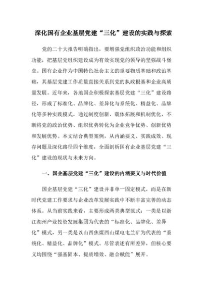/ 【七哥公文】2025年:深化国有企业基层党建“三化”建设的实践与探索+更多免费公文+VX:QiGeGongWen2024