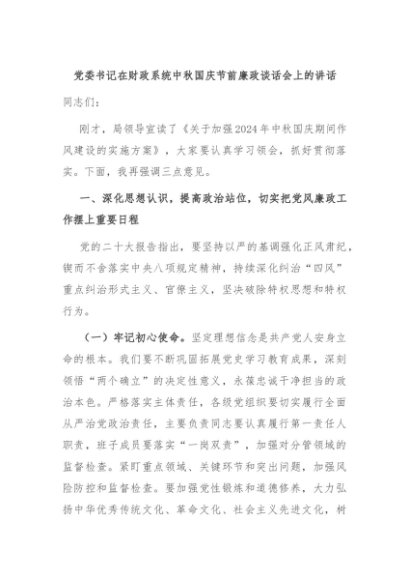 【七哥公文】2025年:【七哥公文】党委书记在财政系统中秋国庆节前廉政谈话会上的讲话+更多免费公文+VX:QiGeGongWen2024