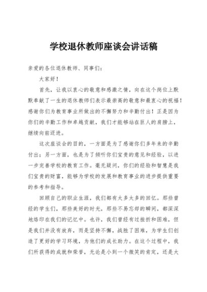 / 【七哥公文】2025年:学校退休教师座谈会讲话稿+更多免费公文+VX:QiGeGongWen2024