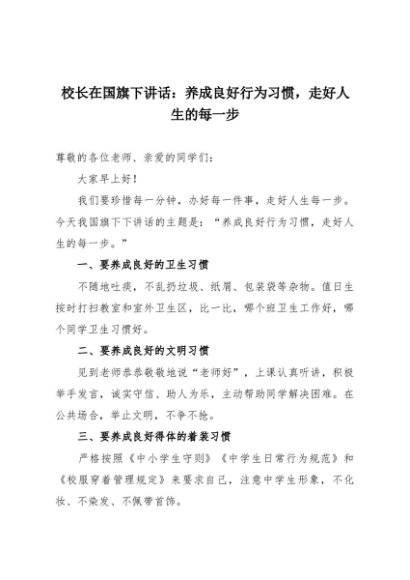 【七哥公文】2025年:校长在国旗下讲话:养成良好行为习惯,走好人生的每一步+更多免费公文+VX:QiGeGongWen2024