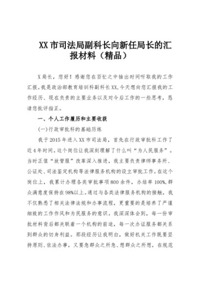 / 【七哥公文】2025年:XX市司法局副科长向新任局长的汇报材料(精品)+更多免费公文+VX:QiGeGongWen2024