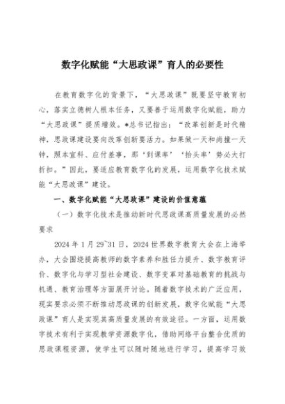 【七哥公文】2025年:数字化赋能“大思政课”育人的必要性+更多免费公文+VX:QiGeGongWen2024