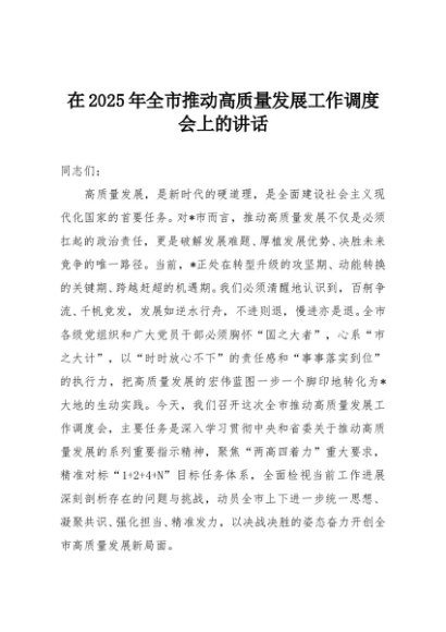 / 【七哥公文】2025年:在2025年全市推动高质量发展工作调度会上的讲话+更多免费公文+VX:QiGeGongWen2024