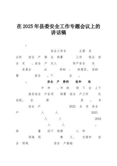 / 【七哥公文】2025年:在2025年县委安全工作专题会议上的讲话稿+更多免费公文+VX:QiGeGongWen2024