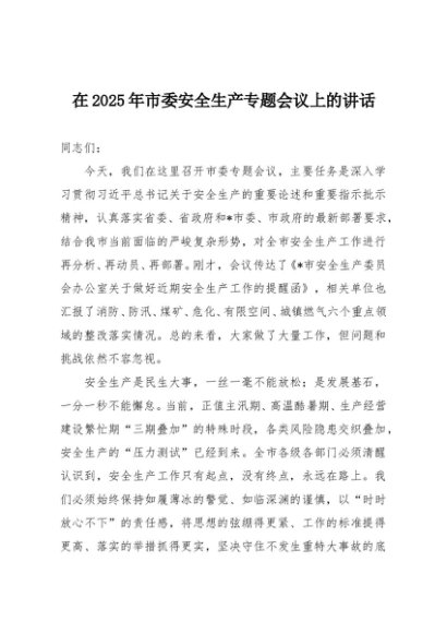 / 【七哥公文】2025年:在2025年市委安全生产专题会议上的讲话+更多免费公文+VX:QiGeGongWen2024