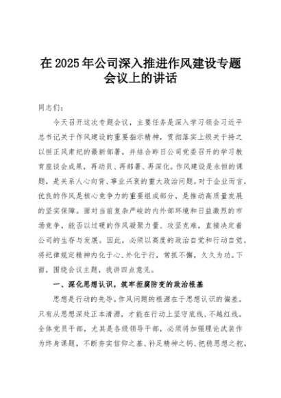 / 【七哥公文】2025年:在2025年公司深入推进作风建设专题会议上的讲话+更多免费公文+VX:QiGeGongWen2024
