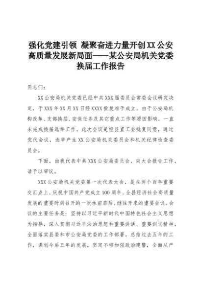 【七哥公文】2025年:强化党建引领 凝聚奋进力量开创XX公安高质量发展新局面——某公安局机关党委换届工作报告+更多免费公文+VX:QiGeGongWen2024