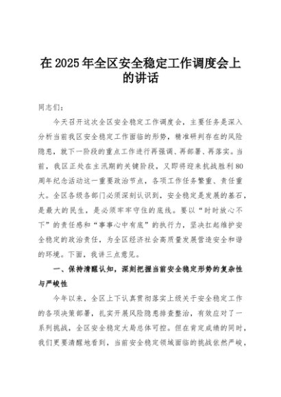 / 【七哥公文】2025年:在2025年全区安全稳定工作调度会上的讲话+更多免费公文+VX:QiGeGongWen2024