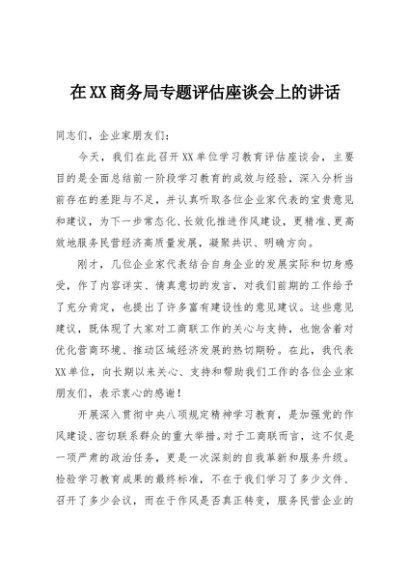 / 【七哥公文】2025年:在XX商务局专题评估座谈会上的讲话+更多免费公文+VX:QiGeGongWen2024