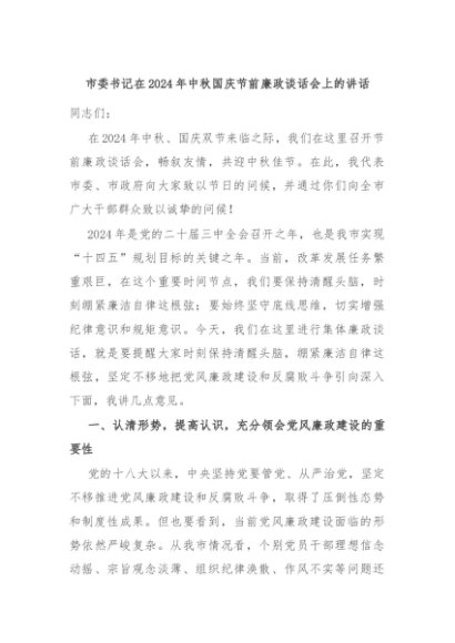 【七哥公文】2025年:【七哥公文】市委书记在202X年中秋国庆节前廉政谈话会上的讲话+更多免费公文+VX:QiGeGongWen2024