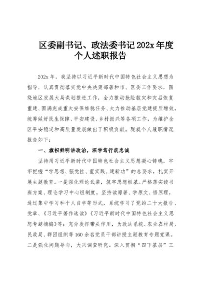 / 【七哥公文】2025年:区委副书记、政法委书记202x年度个人述职报告+更多免费公文+VX:QiGeGongWen2024