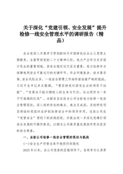 【七哥公文】2025年:关于深化“党建引领、安全发展”提升检修一线安全管理水平的调研报告(精品)+更多免费公文+VX:QiGeGongWen2024