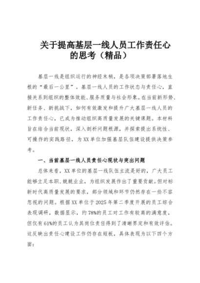 / 【七哥公文】2025年:关于提高基层一线人员工作责任心的思考(精品)+更多免费公文+VX:QiGeGongWen2024