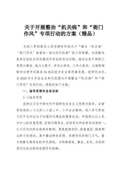 【七哥公文】2025年:关于开展整治“机关病”和“衙门作风”专项行动的方案(精品)+更多免费公文+VX:QiGeGongWen2024