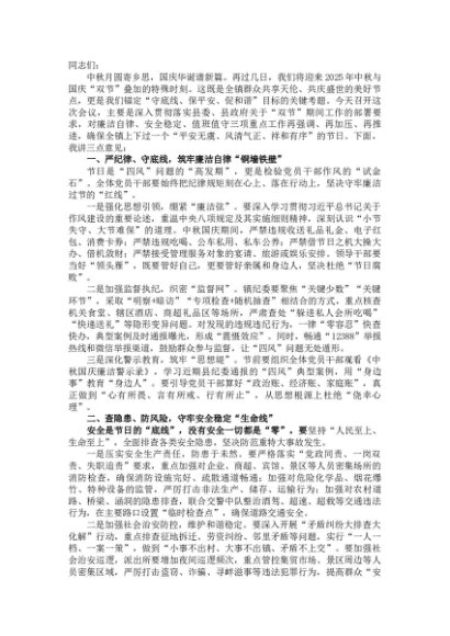 【七哥公文】2025年:【七哥公文】在2025年中秋、国庆“双节”工作部署会议上的讲话(1)+更多免费公文+VX:QiGeGongWen2024