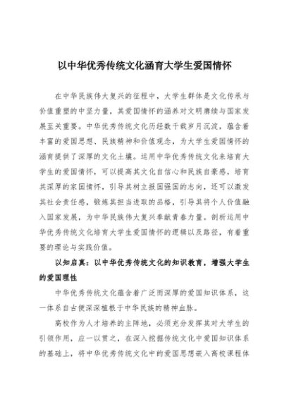 / 【七哥公文】2025年:以中华优秀传统文化涵育大学生爱国情怀+更多免费公文+VX:QiGeGongWen2024