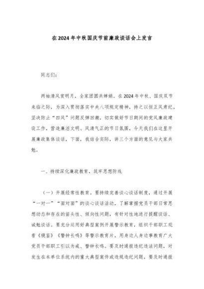 【七哥公文】2025年:【七哥公文】在202X年中秋国庆节前廉政谈话会上发言+更多免费公文+VX:QiGeGongWen2024