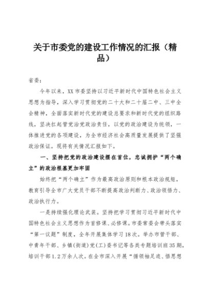 / 【七哥公文】2025年:关于市委党的建设工作情况的汇报(精品)+更多免费公文+VX:QiGeGongWen2024