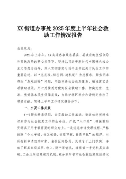 【七哥公文】2025年:XX街道办事处2025年度上半年社会救助工作情况报告+更多免费公文+VX:QiGeGongWen2024