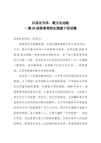 【七哥公文】2025年:以语言为舟,载文化远航-第28届推普周校长国旗下讲话稿+更多免费公文+VX:QiGeGongWen2024