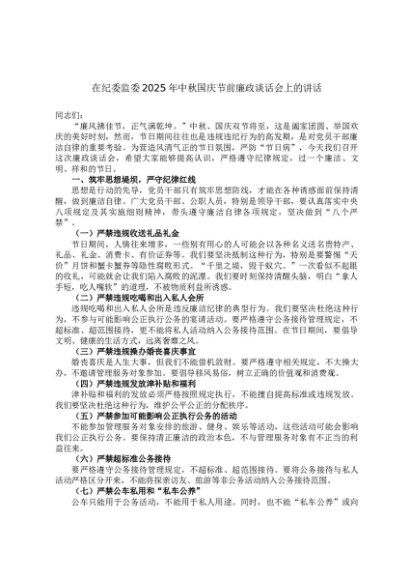 【七哥公文】2025年:【七哥公文】在纪委监委2025年中秋国庆节前廉政谈话会上的讲话+更多免费公文+VX:QiGeGongWen2024