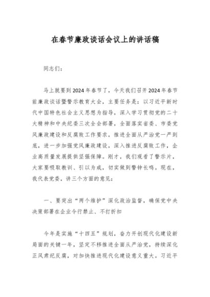 / 【七哥公文】2025年:【七哥公文】在春节廉政谈话会议上的讲话稿+更多免费公文+VX:QiGeGongWen2024