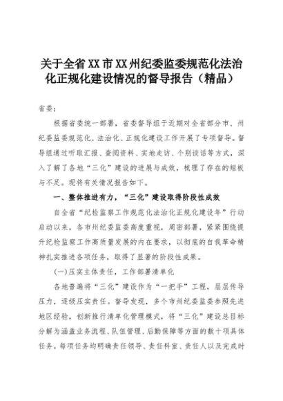 【七哥公文】2025年:关于全省XX市XX州纪委监委规范化法治化正规化建设情况的督导报告(精品)+更多免费公文+VX:QiGeGongWen2024