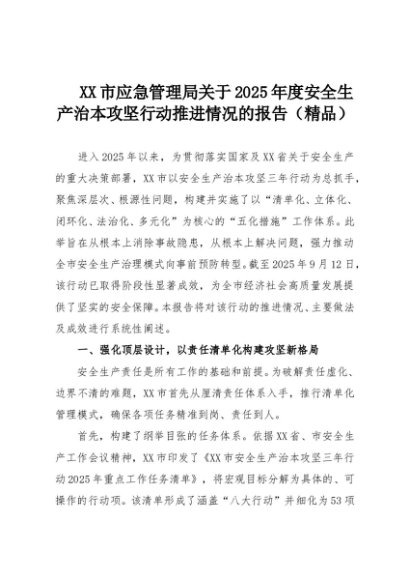 【七哥公文】2025年:XX市应急管理局关于2025年度安全生产治本攻坚行动推进情况的报告(精品)+更多免费公文+VX:QiGeGongWen2024