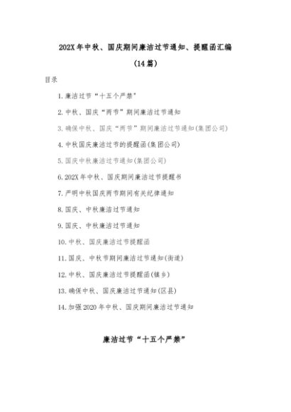 【七哥公文】2025年:【七哥公文】(14篇)202X年中秋、国庆期间廉洁过节通知、提醒函汇编+更多免费公文+VX:QiGeGongWen2024