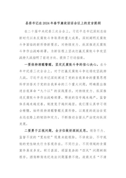 【七哥公文】2025年:【七哥公文】县委书记在202X年春节廉政谈话会议上的发言提纲+更多免费公文+VX:QiGeGongWen2024