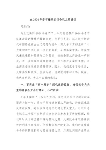 / 【七哥公文】2025年:【七哥公文】在202X年春节廉政谈话会议上的讲话+更多免费公文+VX:QiGeGongWen2024