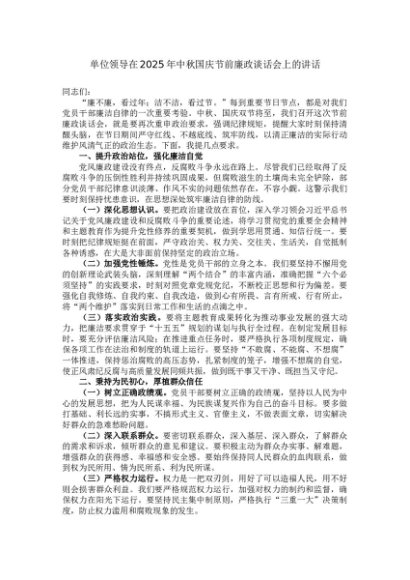 【七哥公文】2025年:【七哥公文】单位领导在2025年中秋国庆节前廉政谈话会上的讲话+更多免费公文+VX:QiGeGongWen2024