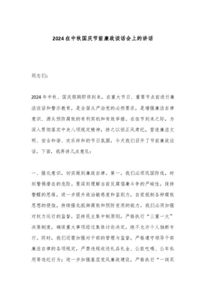 【七哥公文】2025年:【七哥公文】202X在中秋国庆节前廉政谈话会上的讲话+更多免费公文+VX:QiGeGongWen2024