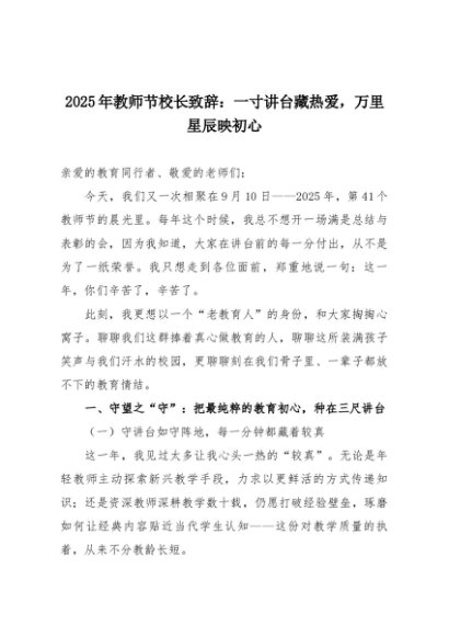 【七哥公文】2025年:2025年教师节校长致辞:一寸讲台藏热爱,万里星辰映初心+更多免费公文+VX:QiGeGongWen2024