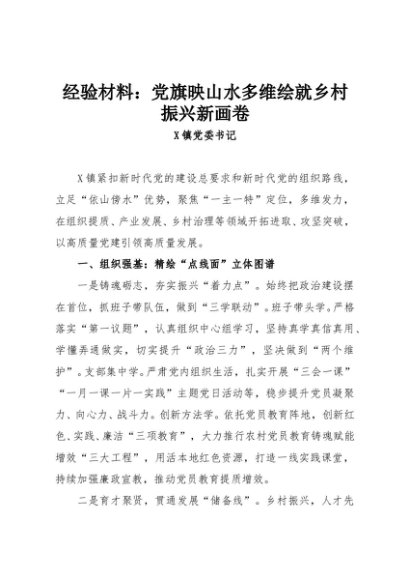 / 【七哥公文】2025年:经验材料:党旗映山水多维绘就乡村振兴新画卷+更多免费公文+VX:QiGeGongWen2024