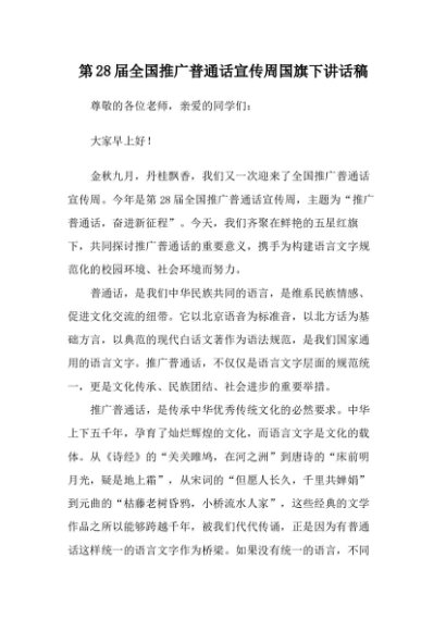 / 【七哥公文】2025年:第28届全国推广普通话宣传周国旗下讲话稿+更多免费公文+VX:QiGeGongWen2024
