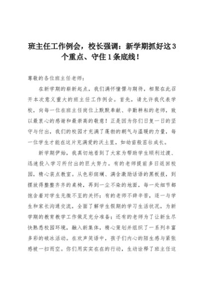 【七哥公文】2025年:班主任工作例会,校长强调:新学期抓好这3个重点、守住1条底线!+更多免费公文+VX:QiGeGongWen2024