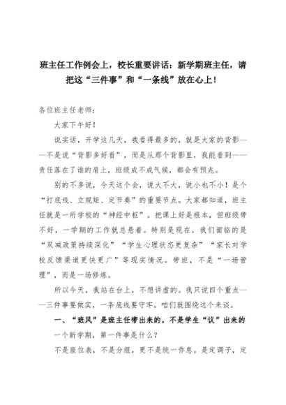 【七哥公文】2025年:班主任工作例会上,校长重要讲话:新学期班主任,请把这“三件事”和“一条线”放在心上!+更多免费公文+VX:QiGeGongWen2024