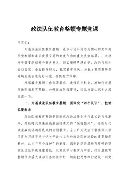 / 【七哥公文】2025年:政法队伍教育整顿专题党课+更多免费公文+VX:QiGeGongWen2024