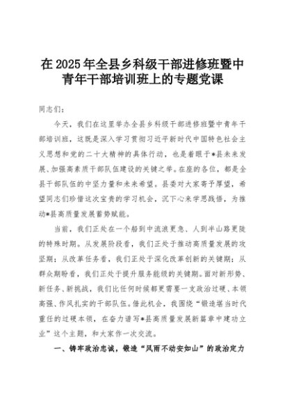 【七哥公文】2025年:在2025年全县乡科级干部进修班暨中青年干部培训班上的专题党课+更多免费公文+VX:QiGeGongWen2024