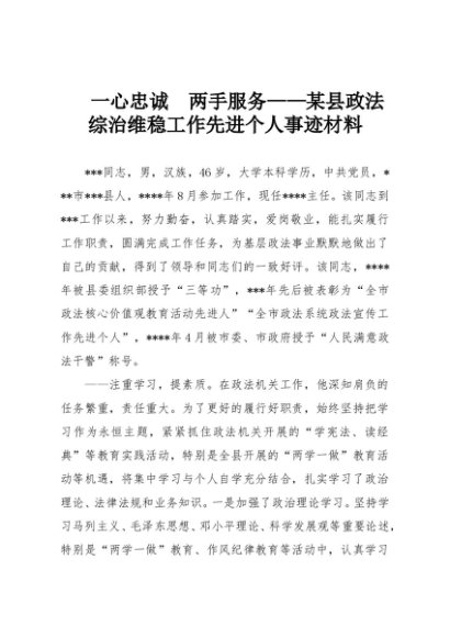 【七哥公文】2025年:一心忠诚 两手服务——某县政法综治维稳工作先进个人事迹材料+更多免费公文+VX:QiGeGongWen2024