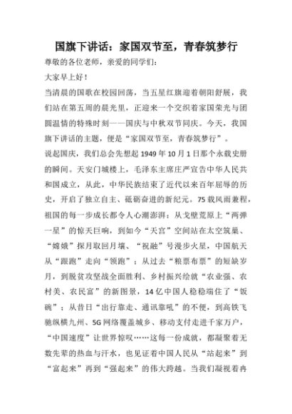 【七哥公文】2025年:国旗下讲话:家国双节至,青春筑梦行+更多免费公文+VX:QiGeGongWen2024