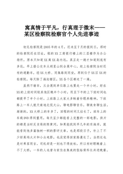 【七哥公文】2025年:寓真情于平凡,行真理于微末——某区检察院检察官个人先进事迹+更多免费公文+VX:QiGeGongWen2024