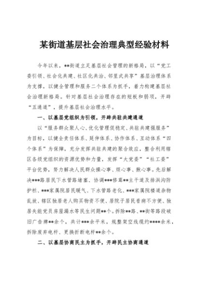/ 【七哥公文】2025年:某街道基层社会治理典型经验材料+更多免费公文+VX:QiGeGongWen2024