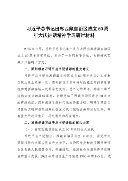 【七哥公文】2025年:习近平总书记出席西藏自治区成立60周年大庆讲话精神学习研讨材料+更多免费公文+VX:QiGeGongWen2024
