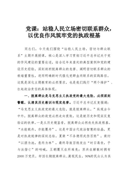 【七哥公文】2025年:党课:站稳人民立场密切联系群众,以优良作风筑牢党的执政根基+更多免费公文+VX:QiGeGongWen2024