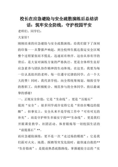 【七哥公文】2025年:校长在应急避险与安全疏散演练后总结讲话:筑牢安全防线,守护校园平安+更多免费公文+VX:QiGeGongWen2024