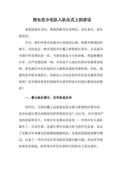 / 【七哥公文】2025年:校长在少先队入队仪式上的讲话+更多免费公文+VX:QiGeGongWen2024