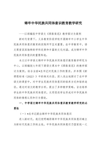 / 【七哥公文】2025年:铸牢中华民族共同体意识教育教学研究+更多免费公文+VX:QiGeGongWen2024